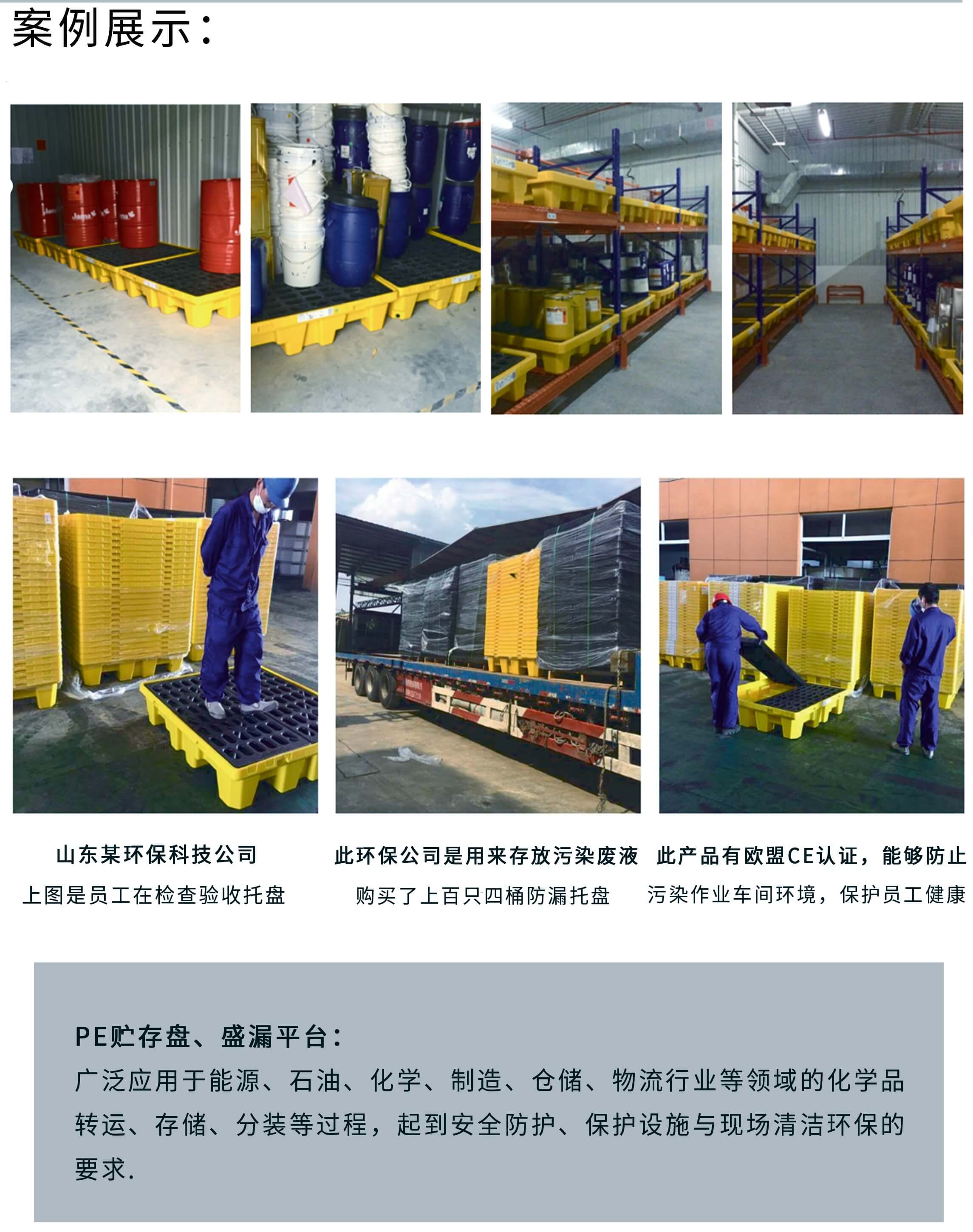 選擇使用防滲漏塑料托盤的目的是為了防止油品,化學(xué)品和危險(xiǎn)液態(tài)品在存儲(chǔ)以及分裝的過程中發(fā)生的泄漏而造成操作人員的人身傷害以及泄漏造成的環(huán)境污染。通過使用這種能盛裝泄漏出來的液體的托盤,得到一個(gè)干凈、衛(wèi)生、安全的工作環(huán)境,不僅保護(hù)操作人安全,還能有效的防止環(huán)境污染,符合環(huán)保要求。